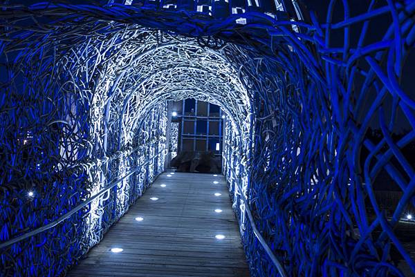 攻蛋之前必經的藤枝隧道 燈光的照亮下好美 好像走入浪漫的時光隧道一般