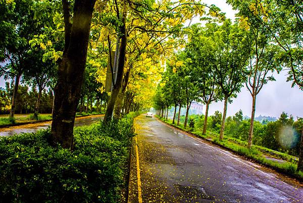 但用很浪漫的心情 情侶可以撐起小雨傘 走在黃金大道上也會浪漫滿分的