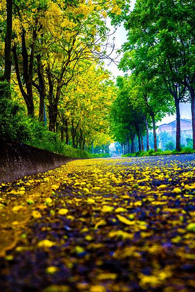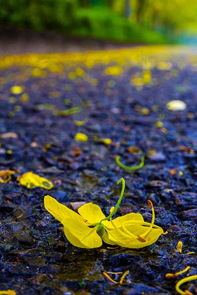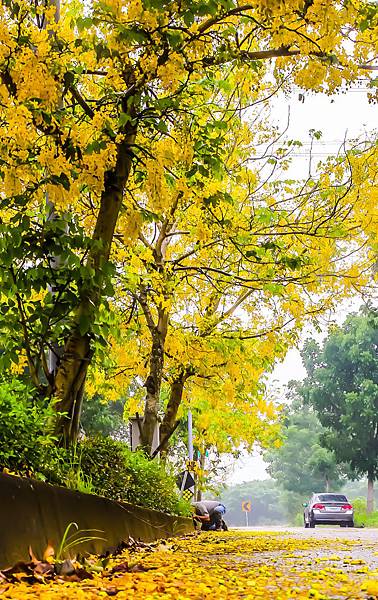 因為下雨會加速把花瓣打落 這就是名符其實的黃金雨吧