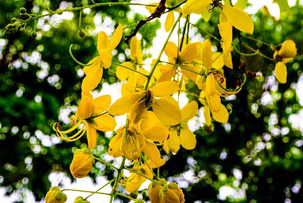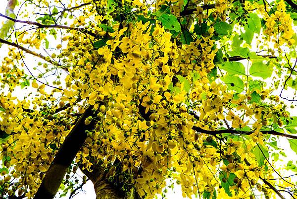 這阿勃勒花掛在樹上數量相當多 幾乎把整棵樹佔滿 黃花已經蓋過綠葉了