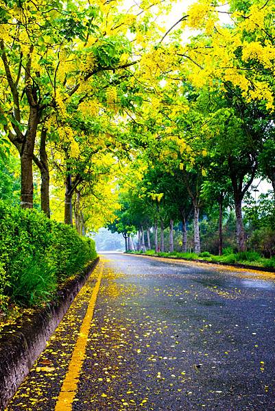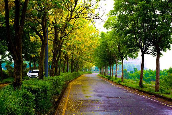 台南高鐵站阿勃勒行道樹 這是在沙崙國中旁的道路拍的